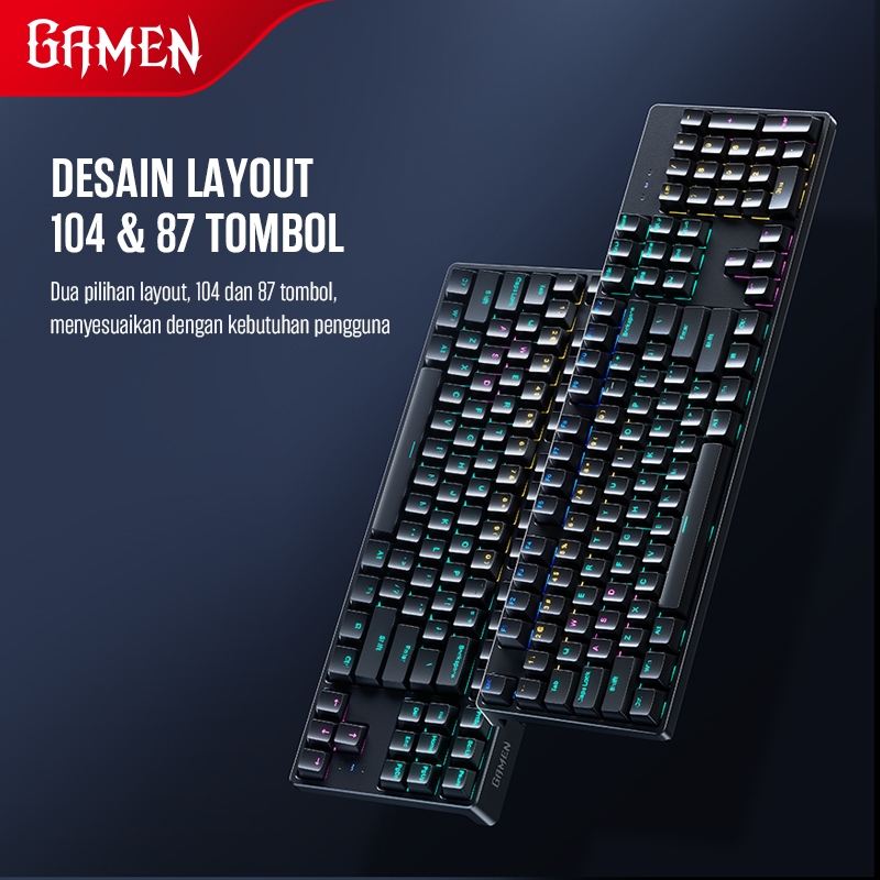 GAMEN Titan 8 Keyboard Gaming Mechanical Ergonomic Keycaps RGB 3 Pin Hot-Swappable Linear Red Switch 87/104 Keys Original - Garansi 1 Tahun