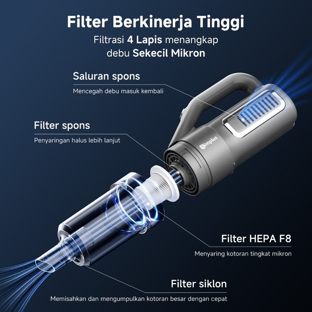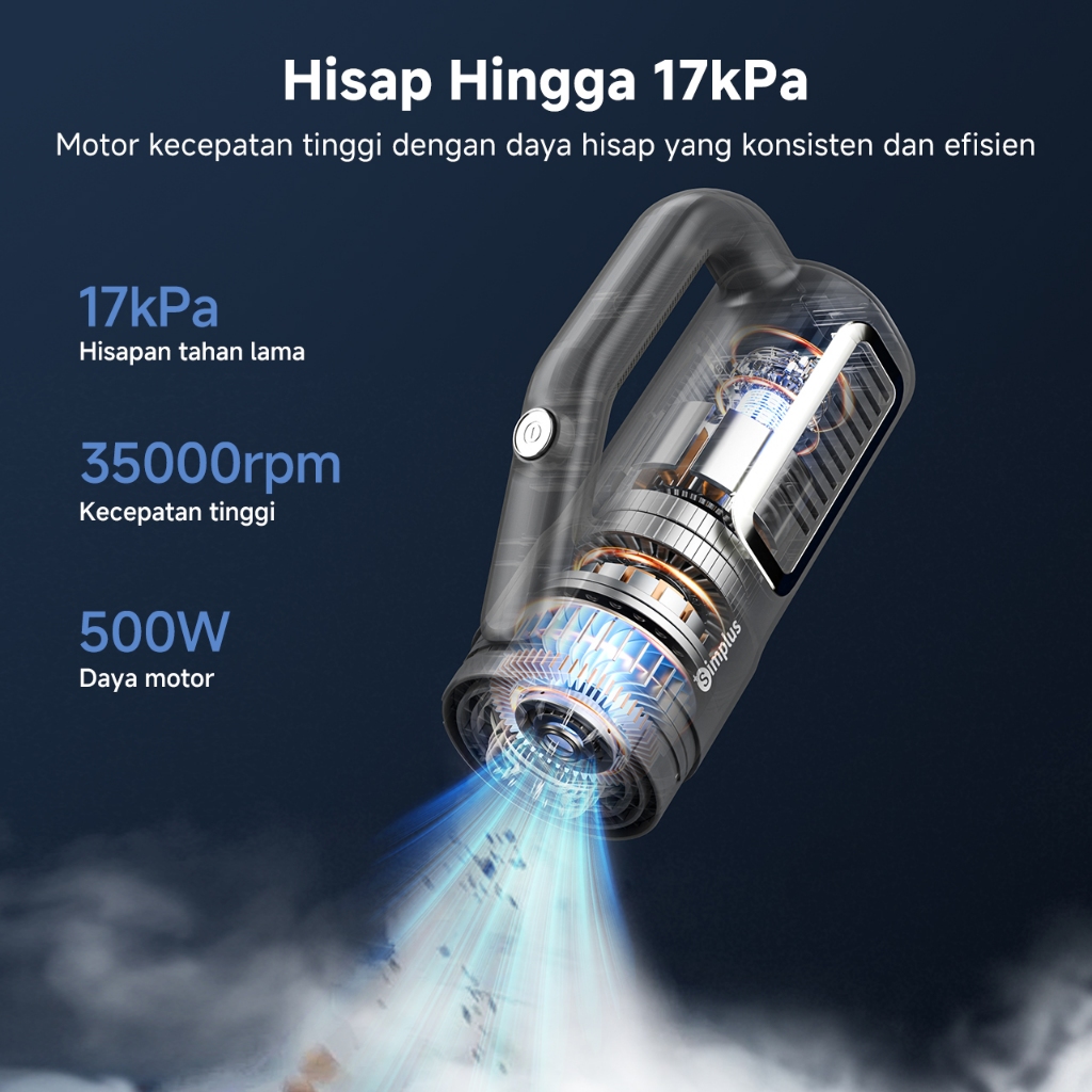 Simplus Vacuum Cleaner Genggam Berdiri 2 IN 1 Penyedot Debu Daya Hisap Besar 17000Pa Aksesori 9pcs