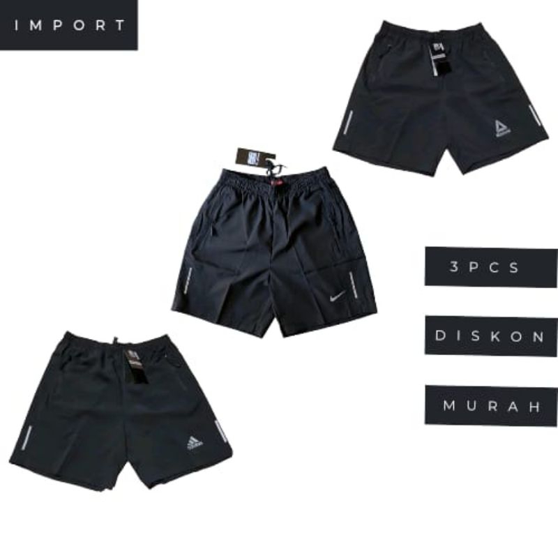 Paket 3 Pcs Celana Pendek Parasut Elastis Saku Resleting Waterproff Import