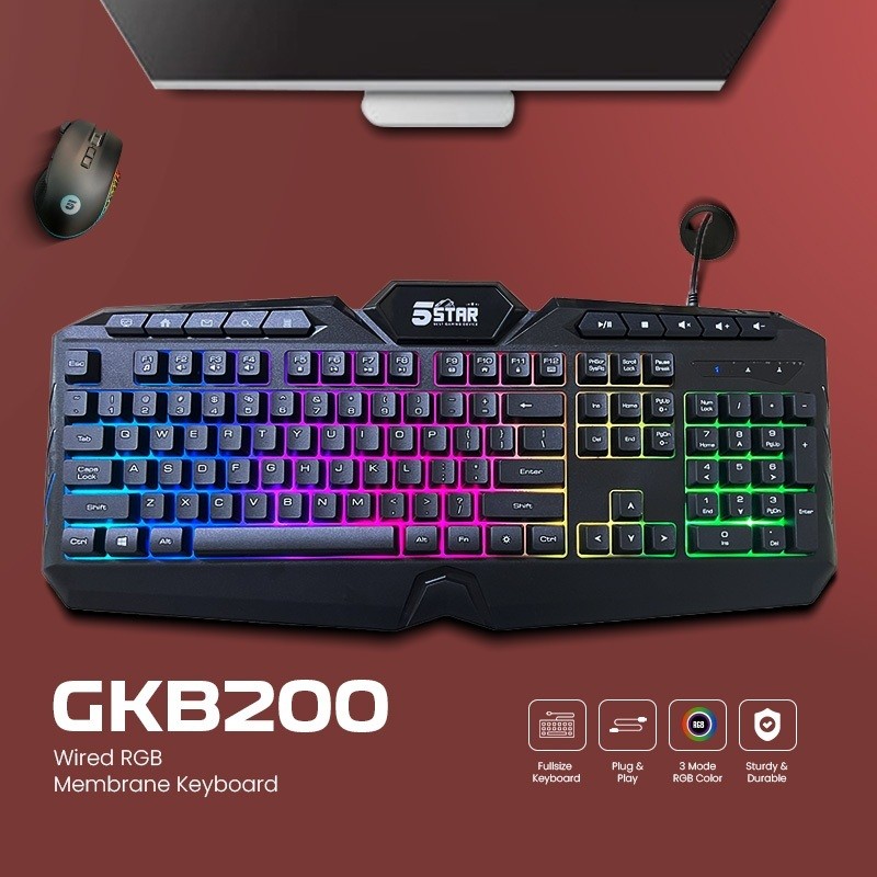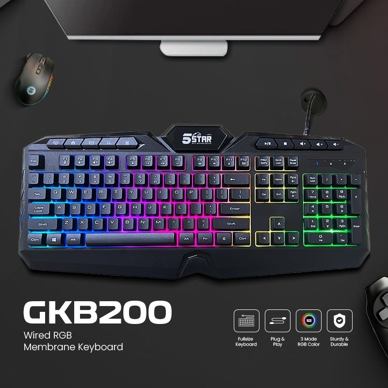 5Star Gaming - Keyboard Gaming Membrane with Anti-Ghosting Keys RGB GKB200