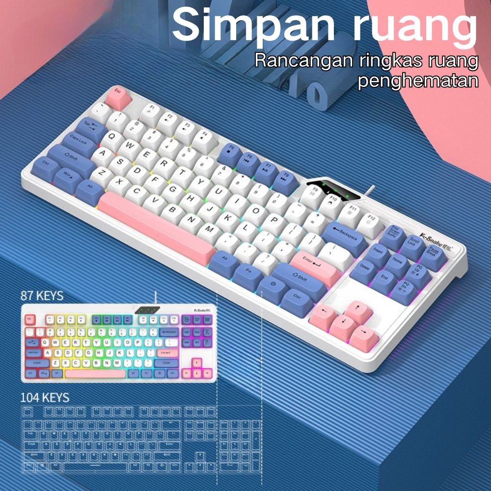 Keyboard Gaming Keyboard Mekanik RGB Gaming Keyboard untuk PC Laptop Hp / Esports Gaming Keyboard / 87 Keys Keyboard BackLight