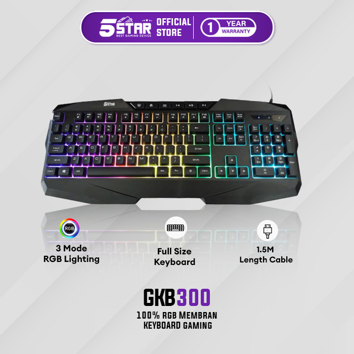 5Star Gaming GKB300 Keyboard Gaming Membrane Full Key Membrane Keyboard with Anti-Ghosting Keys RGB
