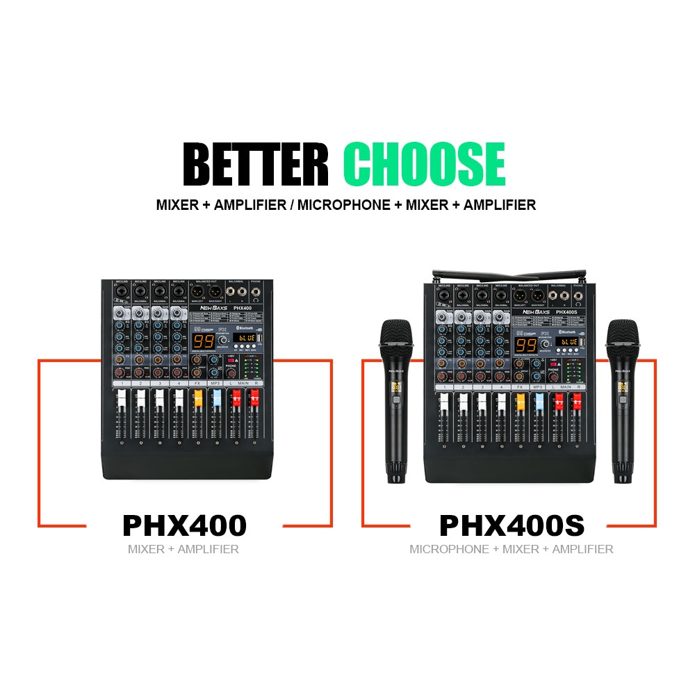 mall inline badgeNEW BAXS PHX400S/PHX400 audio mixer Professional 4-channel power amplifier with wireless microphone one