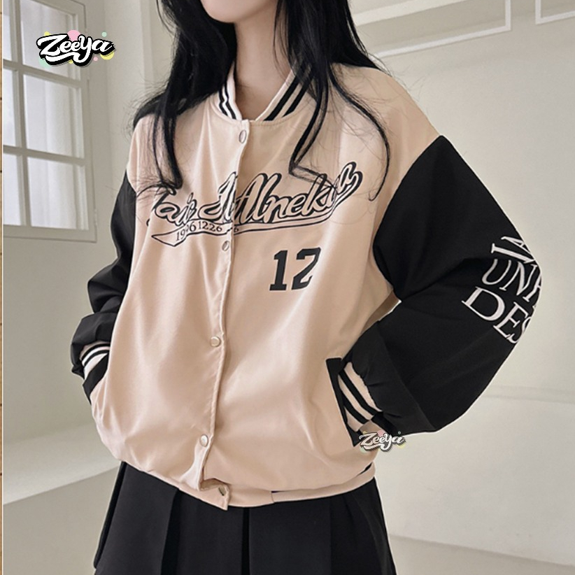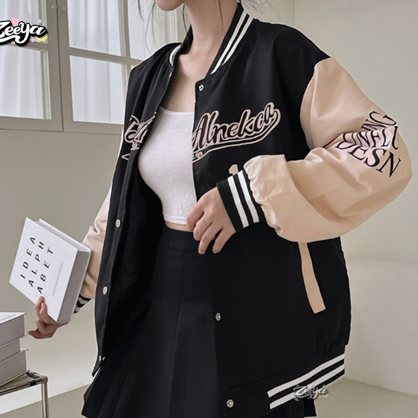 ZY UNFLUO DESN Varsity Jacket Baseball Wanita Dan Pria Lettering Style Outer Remaja Baju Dewasa Murah Gratis Ongkir