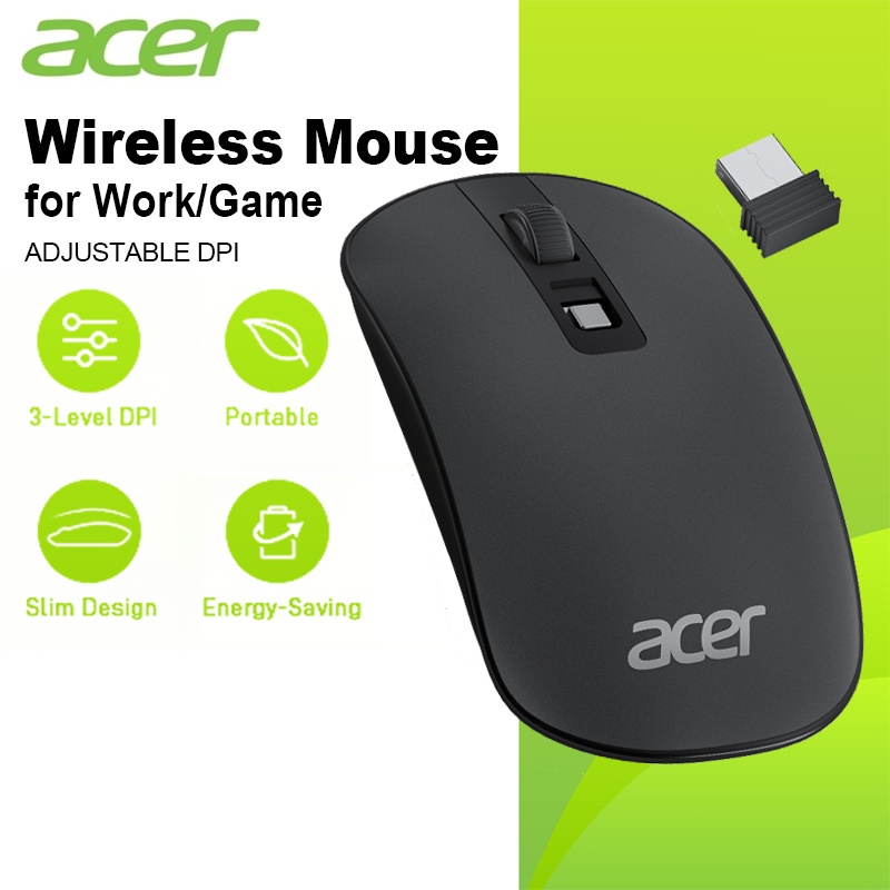 Acer Wireless Mouse - Ultra-Slim 2.4G Black Wireless Mouse with 1600 DPI Adjustable Sensitivity, Multi-Device Compatibility