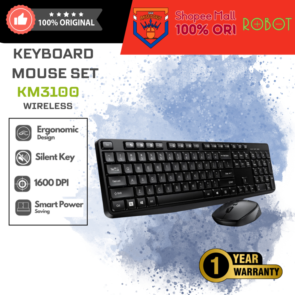 ROBOT Portable Wireless Set Combo Keyboard and Mouse KM3100 Original Garansi