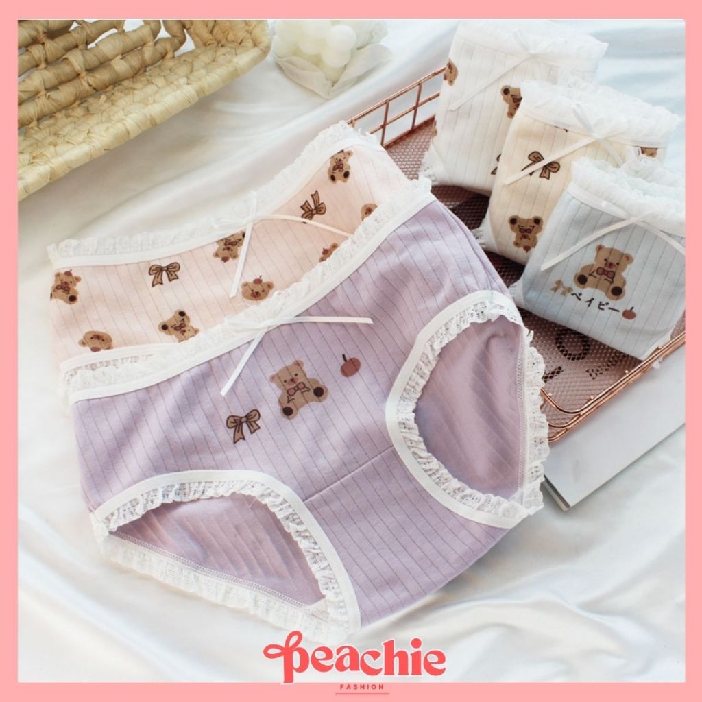Celana Dalam Wanita Bahan Katun Adem CD Motif Bear Beruang Underwear Pushup Sempak CD1976 Murah Gratis Ongkir