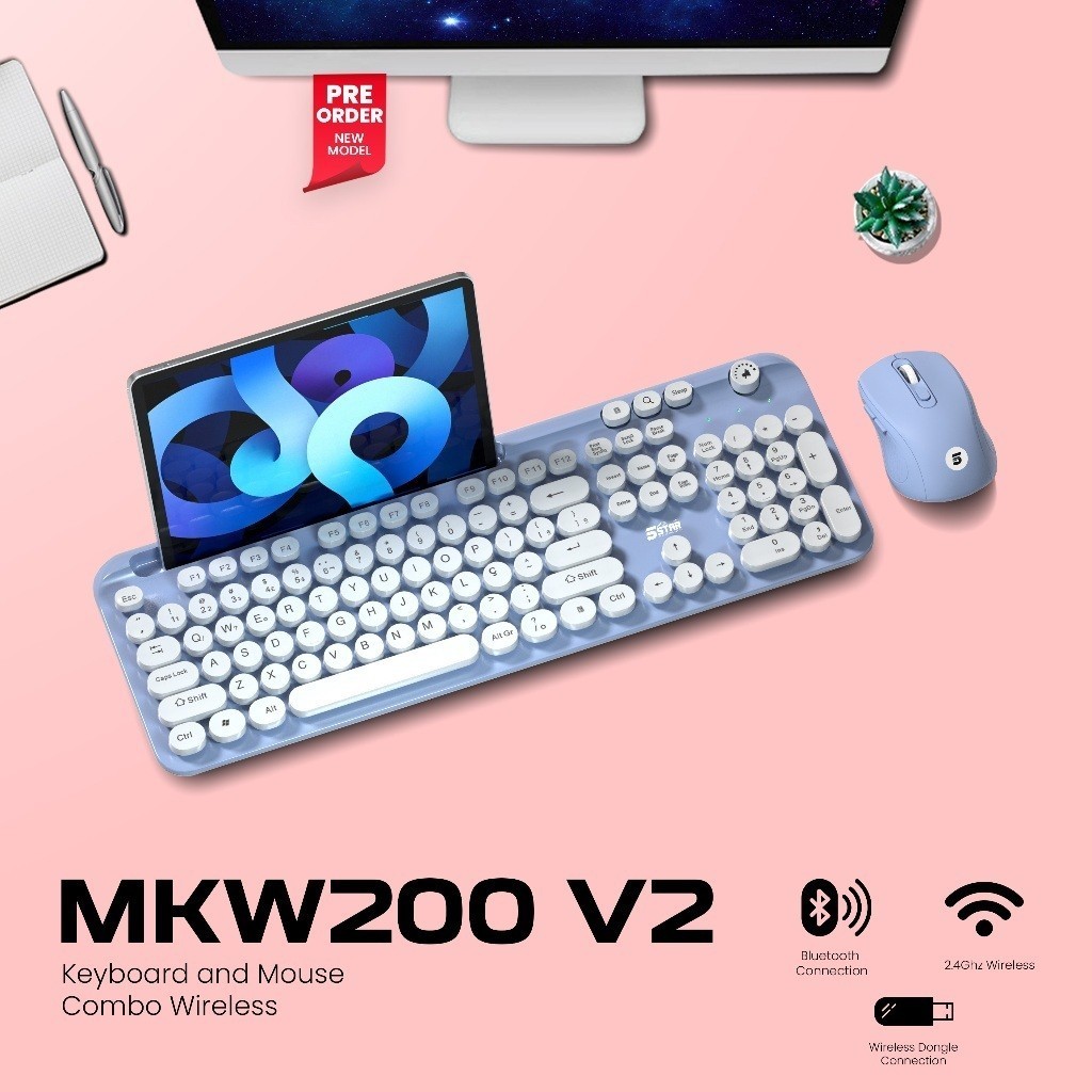 5Star MKW200 V2 Set Keyboard And Mouse 2 in 1 Wireless 2.4Ghz And Bluetooth Rechargable Type-C for Android, iOS, PC, Laptop
