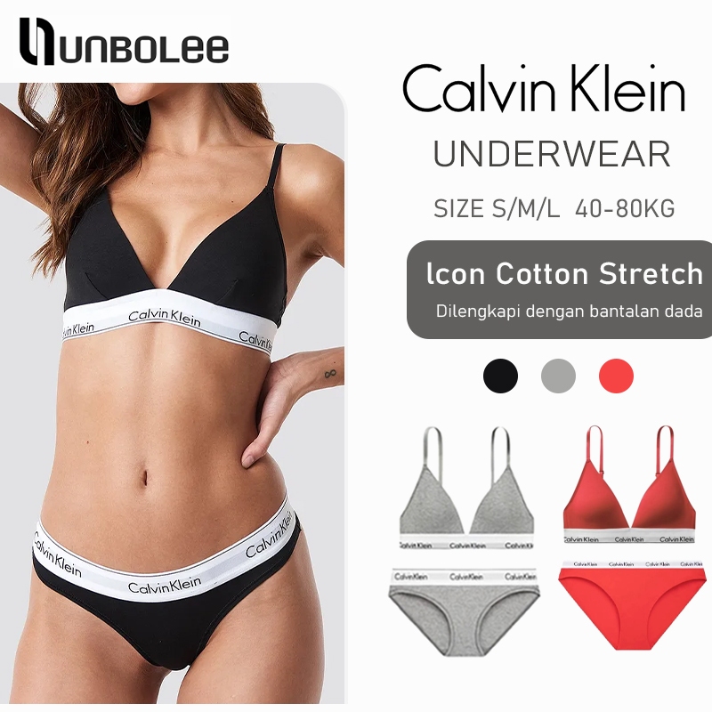 UNBOLEE Calvin Klein Underwear Modern Cotton Suspender Pakaian Dalam Bra Set Ready Stock Murah Gratis Ongkir
