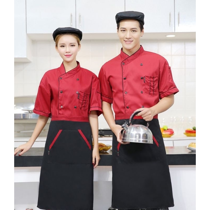 Kitchen.Official Baju Kameja Koki Chef Jacket Lengan Pendek Seragam Masak Unisex Pria Wanita