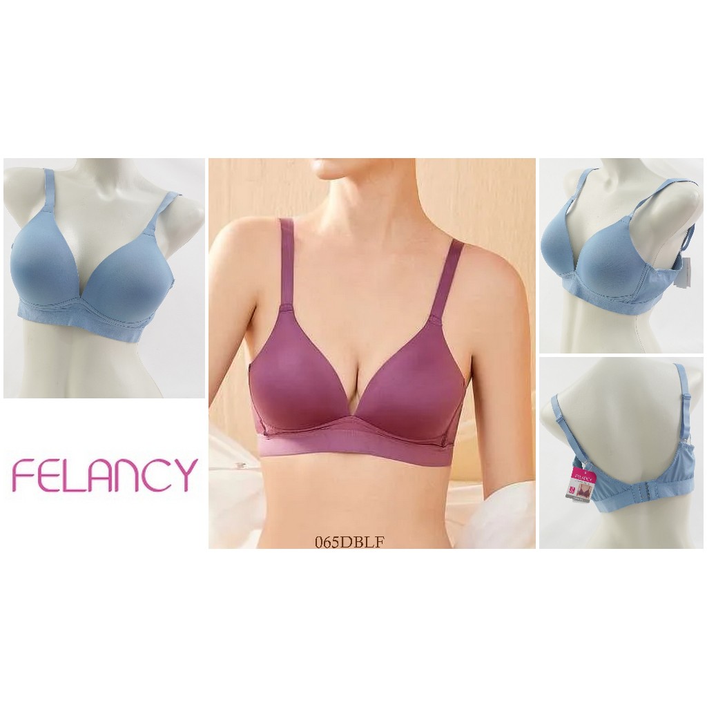 Bra Wanita Full Cup Tanpa Kawat Busa Tipis Size 36C 38C 40C FELANCY Motif Polos Pakaian Dalam / Underwear 065F Murah Gra