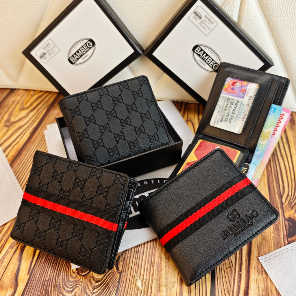 BAMBEG Dompet Pria Kulit PU Premium Emboss - Dompet Lipat Pendek 2R Extra Slot Kartu Hitam Free Box 191564