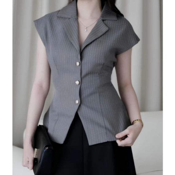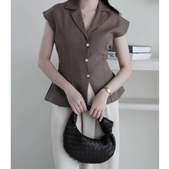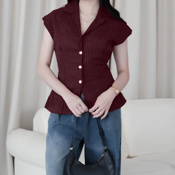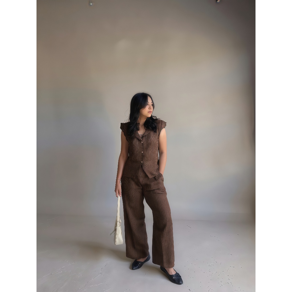 Siva Fitted Vest Stripe Semi Wool - Atasan Wanita Korean Vest Rompi Stripe Sleeveless Vest Top Outher Wanita Terbaru 202