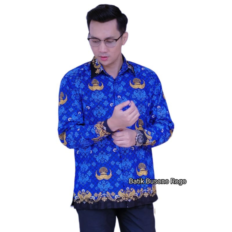 BAJU BATIK KORPRI TERBARU PRIA WANITA KATUN 40S KERAH LENGAN HITAM PAKAI LAPIS FURING