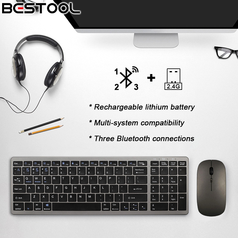 Bestool Keyboard Mouse Wireless Set Multi Device Silent Keys Kompatibel Laptop HP Tablet