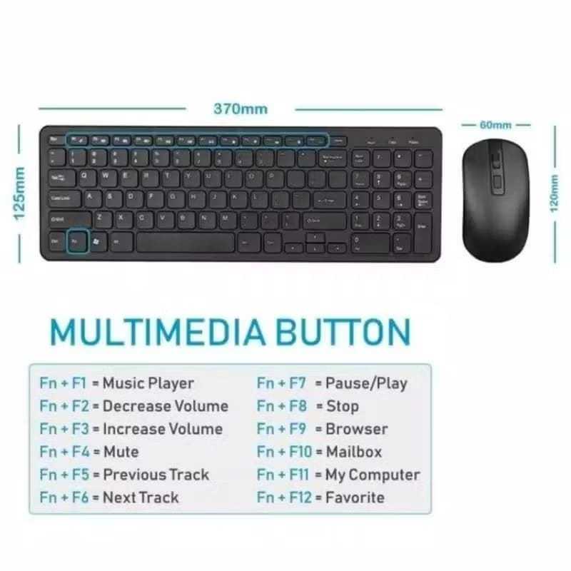 DELL GKM520 Wireless Keyboard Dan Mouse Combo Set Keys Fullsize