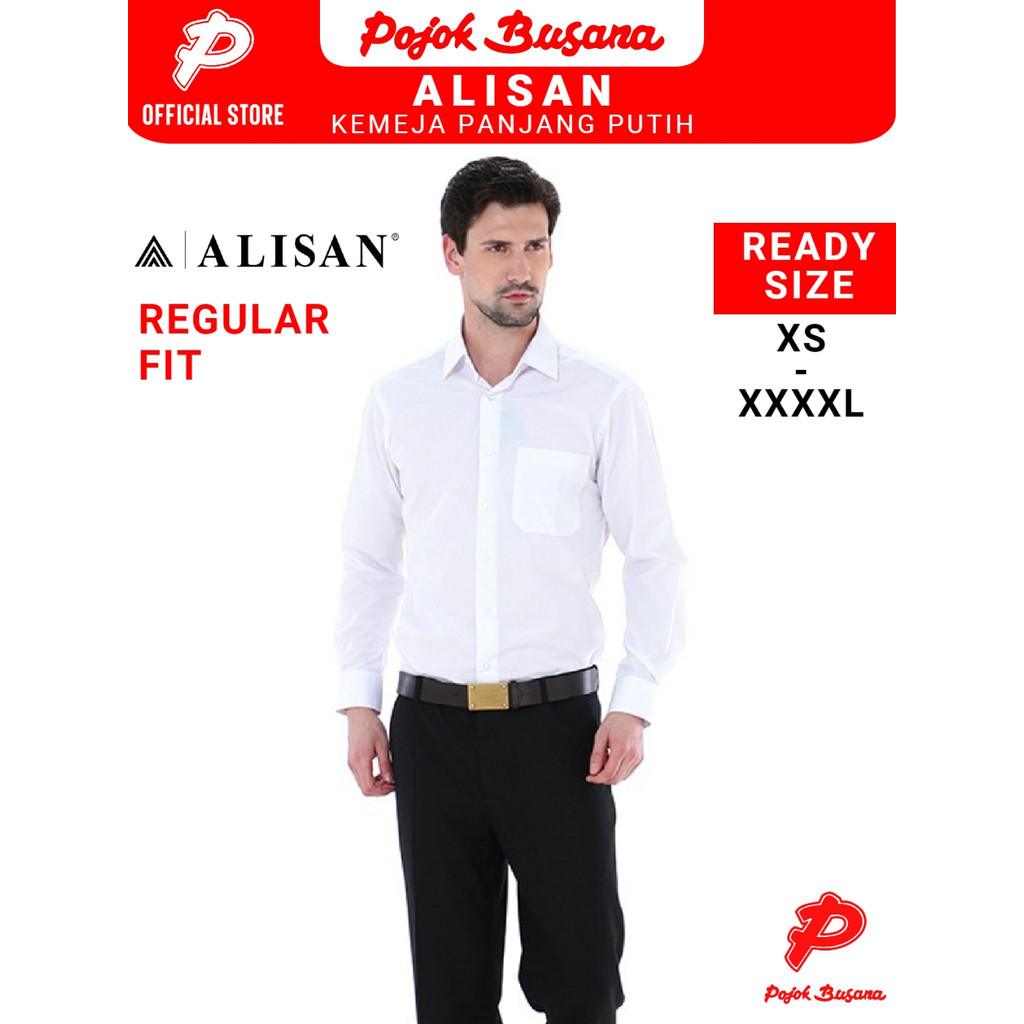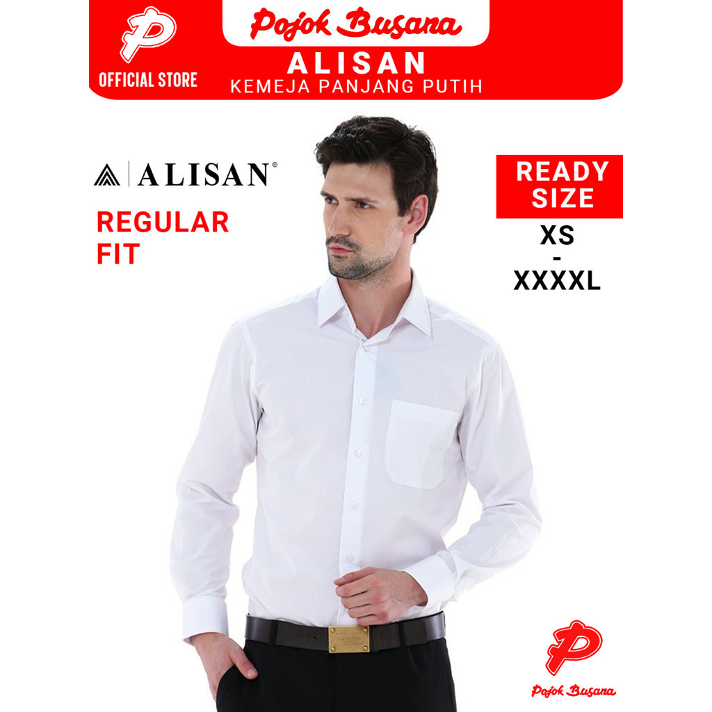 Pojok Busana Alisan Kemeja Panjang Regular Pria - Baju Cowok Formal Kerja Kantor Putih Hitam Jumbo