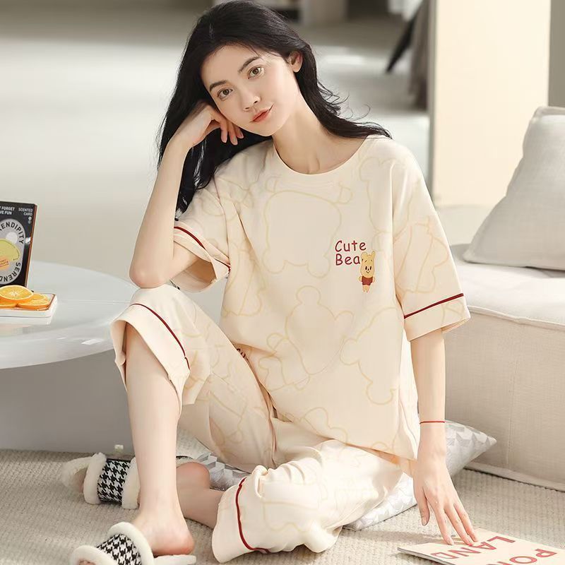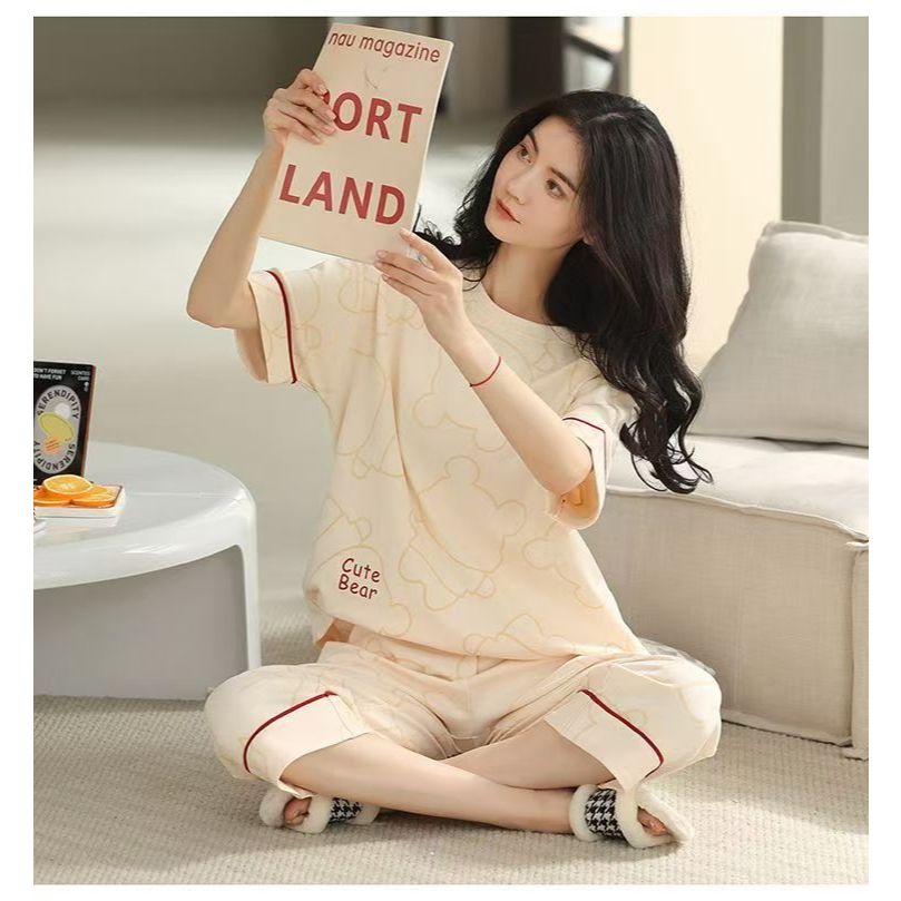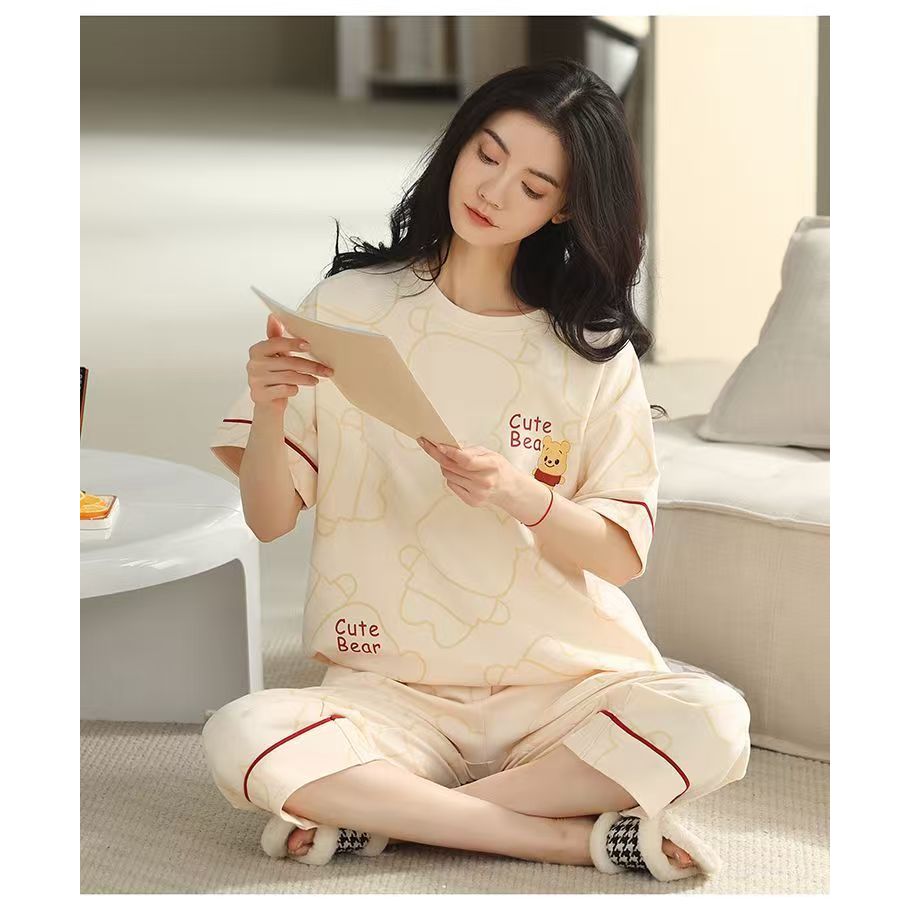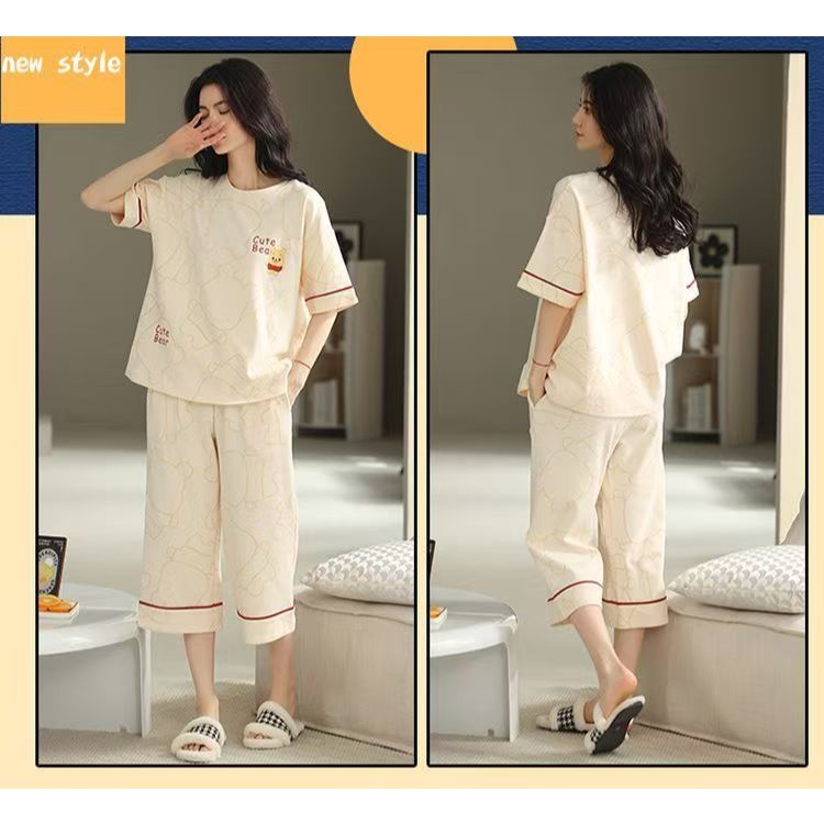 Set Piyama Wanita Breathable, Pendek Lengan, Celana 7/8, Desain Beragam, Nyaman Tidur/daster/baju tidur wanita/baju tidu