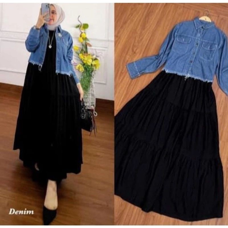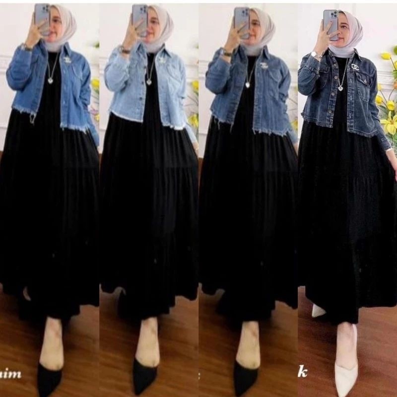 setelan ONE SET JAKET JEANS CROP DAN INER SUSUN DRESS SETELAN WANITA KEKINIAN DAN VIRAL UKURAN JUMBO Murah Gratis Ongkir