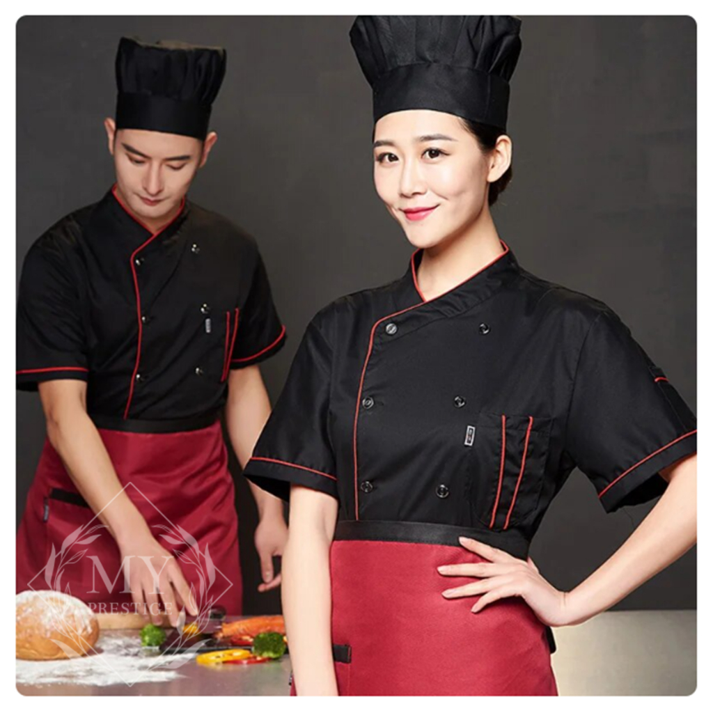 Baju Seragam Koki Chef Lengan Pendek Kemeja Kain Jaket Dapur Kitchen Masak Unisex Pria Wanita