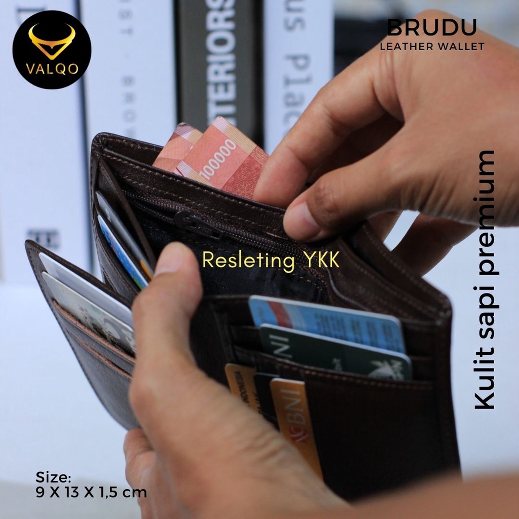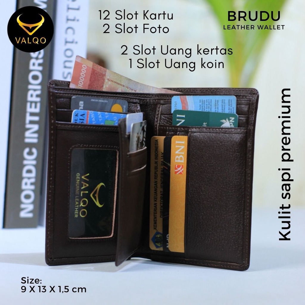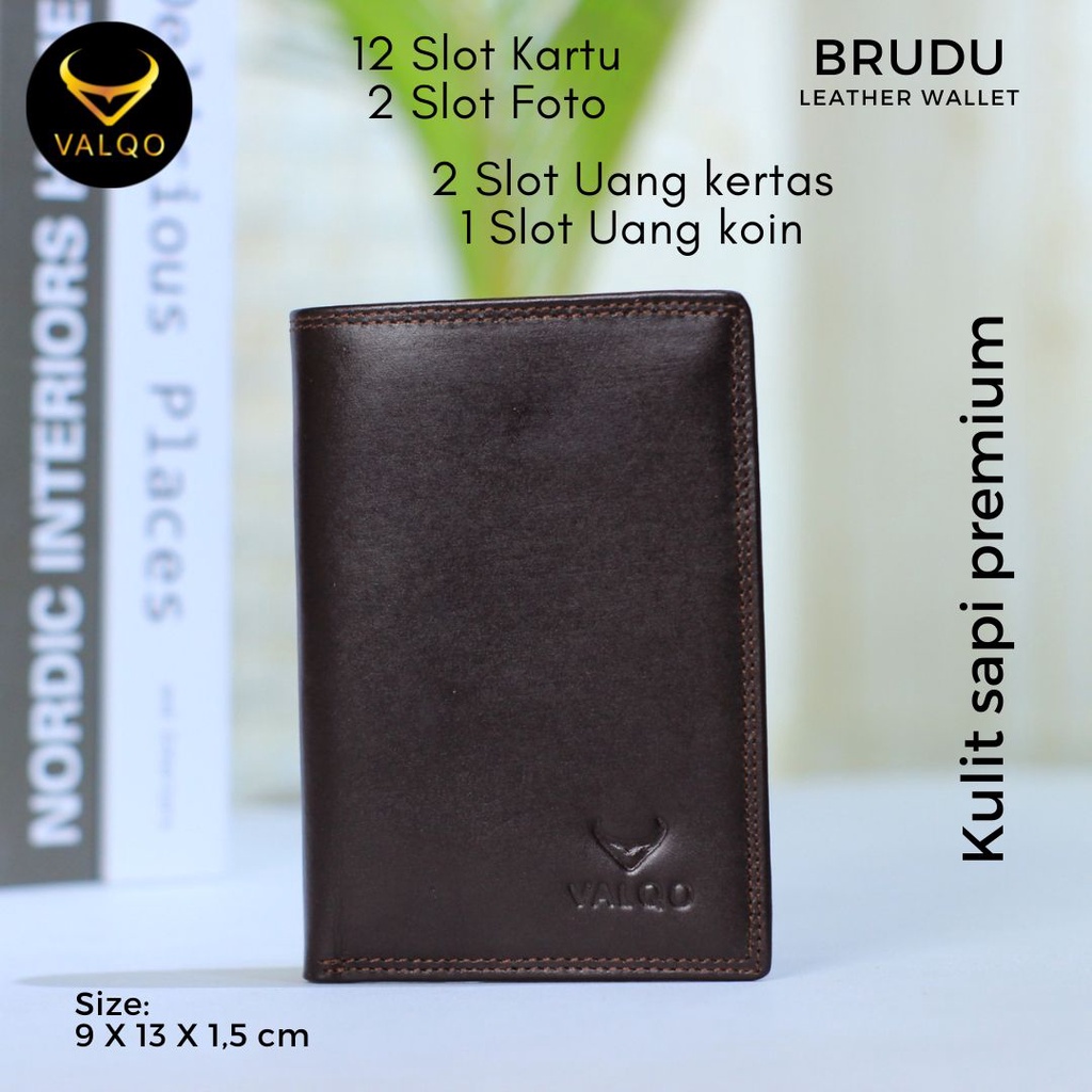 VALQO BRUDU Dompet Kulit S4ppi Pria Cowok Kartu Laki Berdiri 3/4
