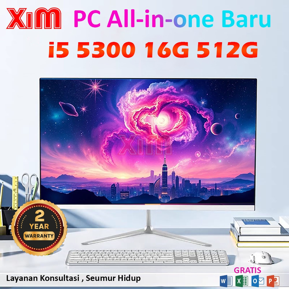 Xim PC Pc All In One Intel Core I5-5300U Komputer Full Set Pc Gaming Fullset Mini Pc Monitor Pc Gaming Keyboard Mouse Mouse Pad Gratis Ram 16GB SSD 1TB Full HD