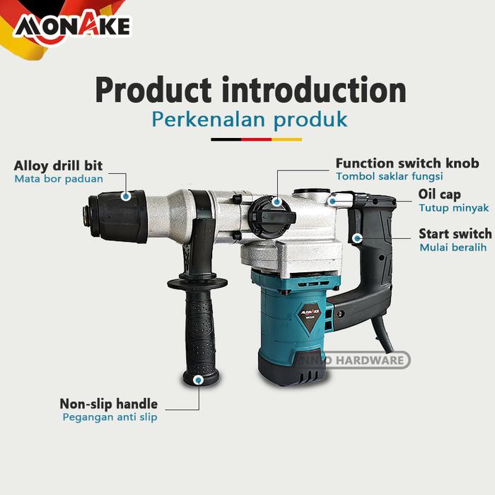 MONAKE Rotary Hammer Drill Mesin Bor Beton Listrik Electric Hammer