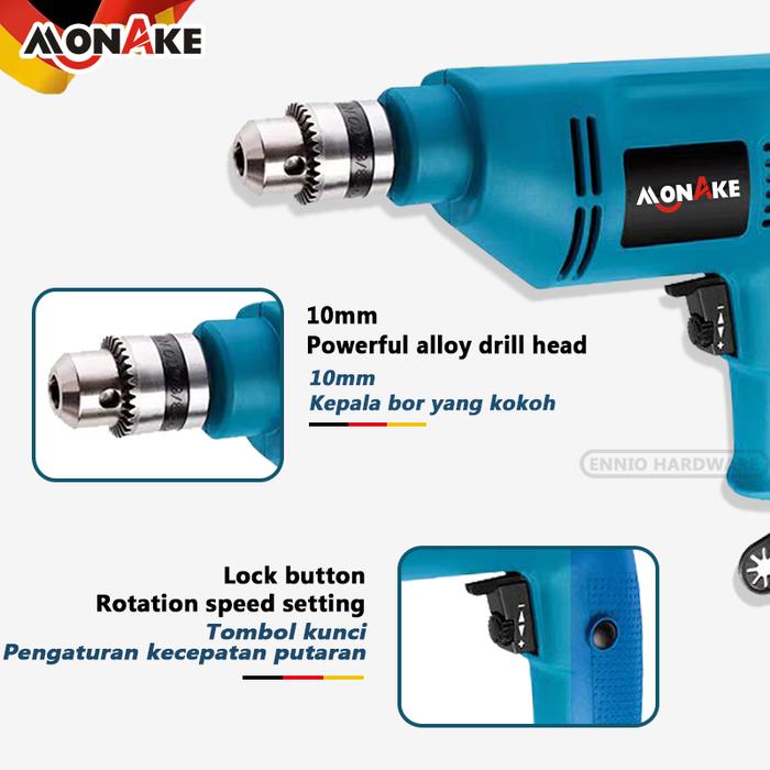 MONAKE Mesin Bor Listrik Impact Drill Electric Drill 10mm Bolak Balik