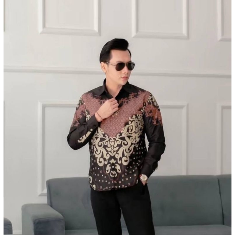 NEW ARRIVAL DISTRO KEMEJA BAJU BATIK PRIA LENGAN PANJANG PRIA COWO COWOK BORDIR SOGAN HRB026 MODERN TERBARU
