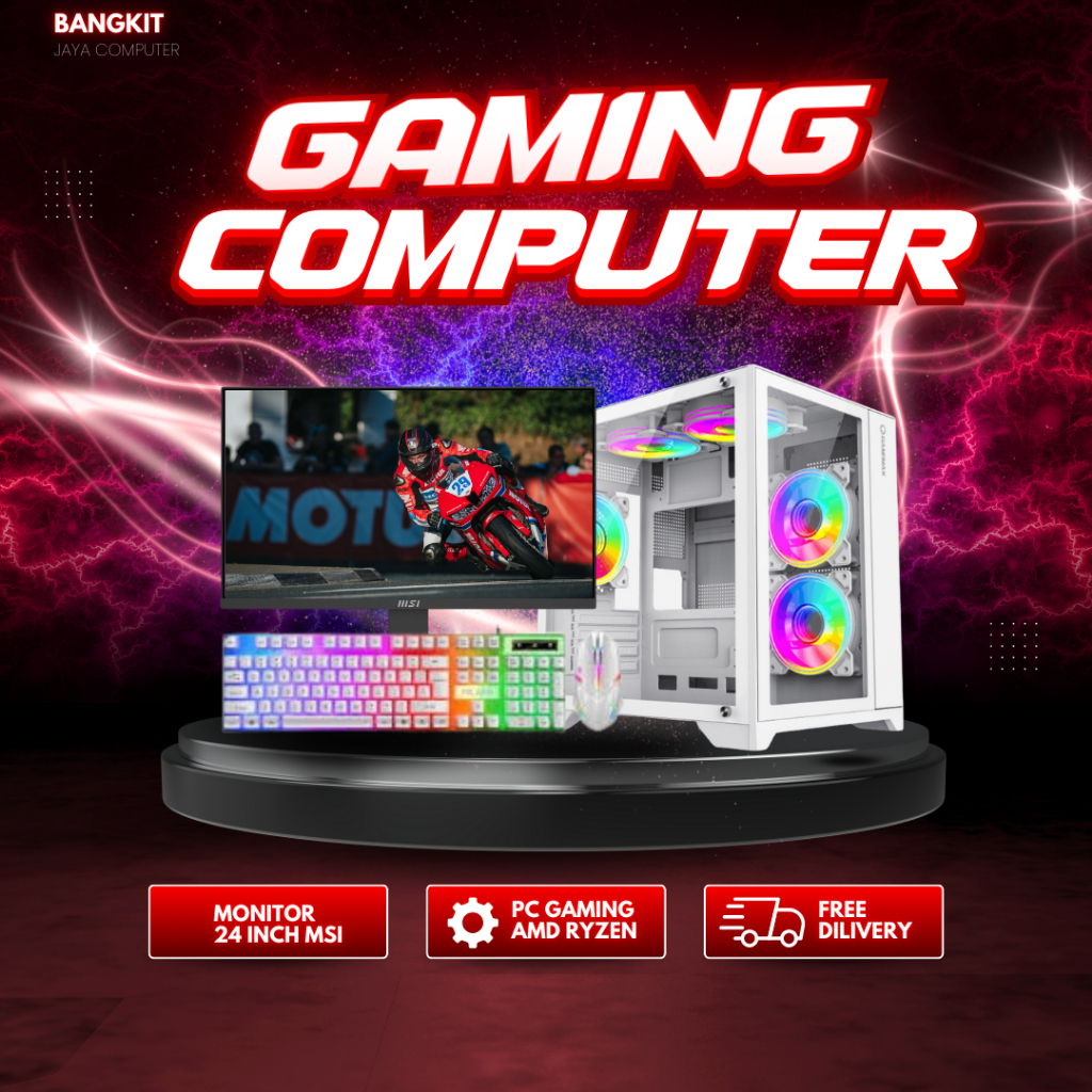 PC Gaming Fullset Ryzen 5 5600G Ram 16GB SSD/HDD Monitor 24 Inch Gaming Editing