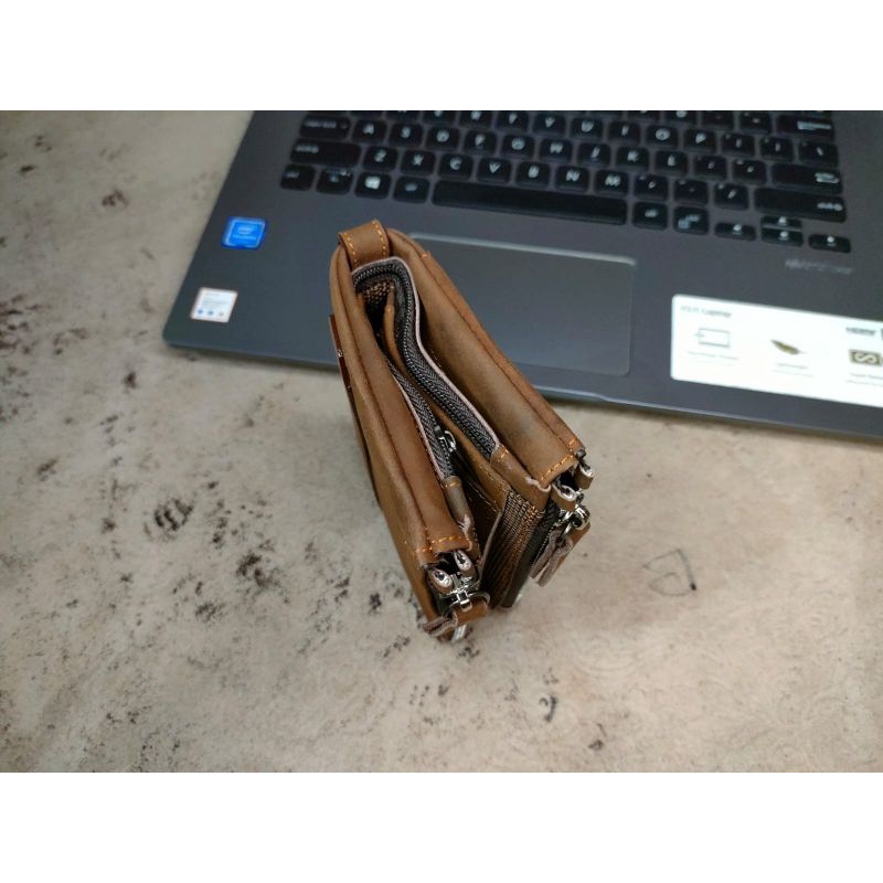 Dompet kulit asli Ryoeku dobel ziiper kulit s4ppi asli crazy horse classic