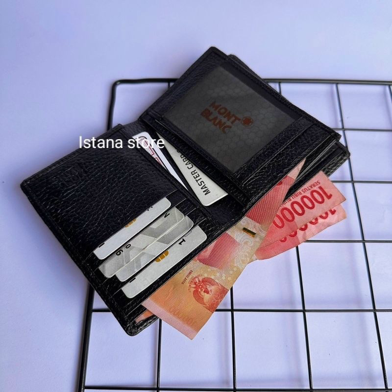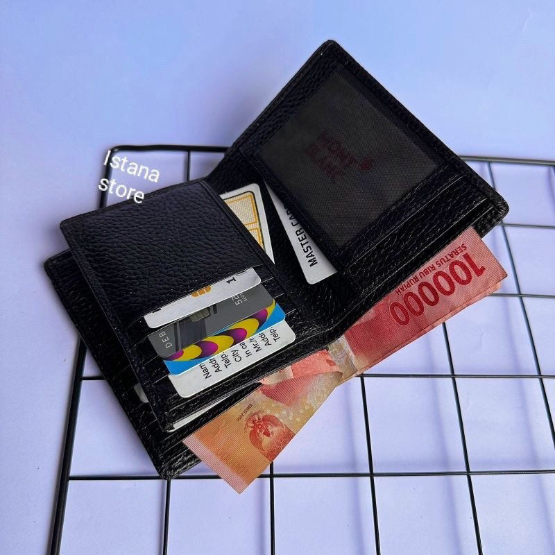 Dompet Pria Kulit berdiri Asli Lipat vertikal mb Hitam Pekat