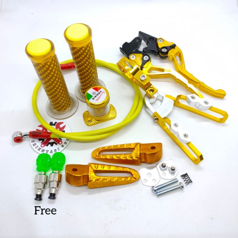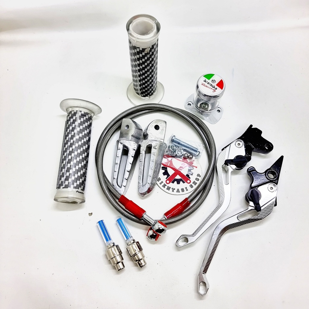 Paket Lengkap Aksesoris Motor Beat/Vario - Handle Sisik CNC + Handgrip Carbon + Selang Rem + Footstep Scoopy GRATIS Tutu