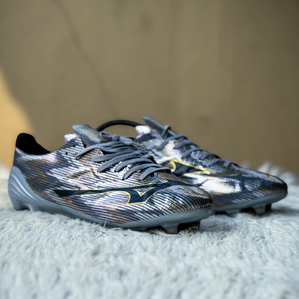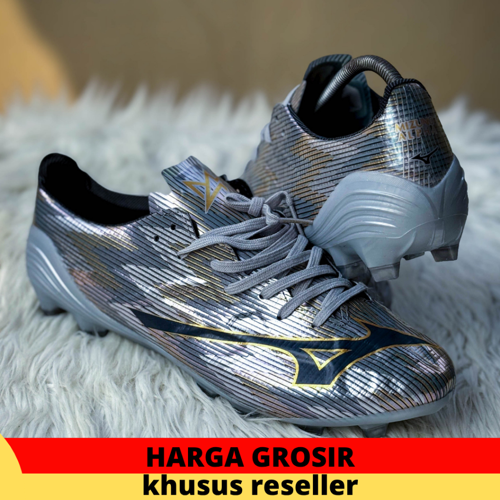 Sepatu bola mizuno alpha II galaxy silver kuning black fg