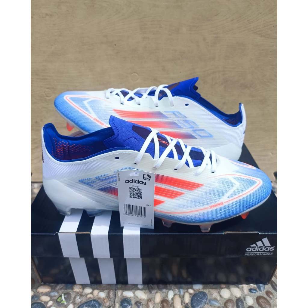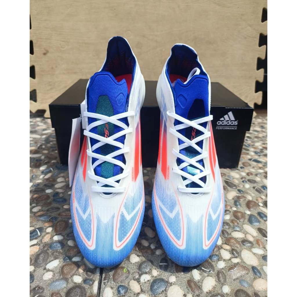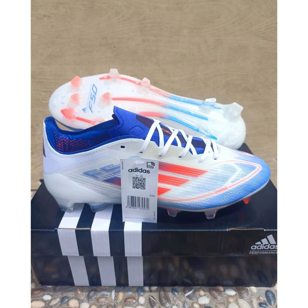 Sepatu Bola Slimfit F50 Messi Cloud FG White Red Lucid Blue
