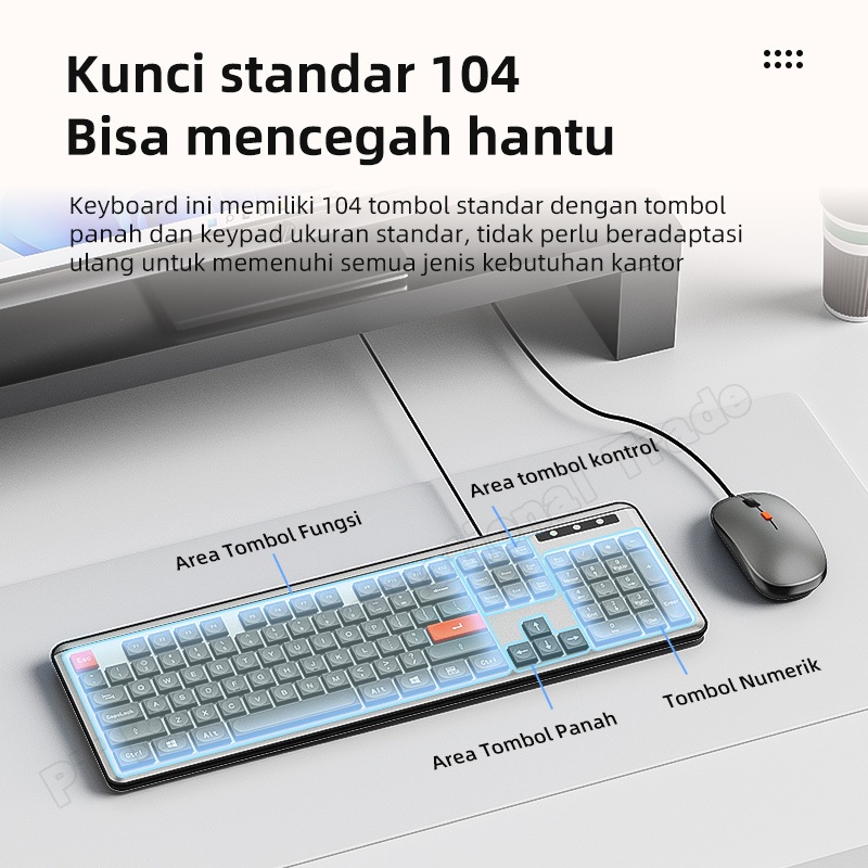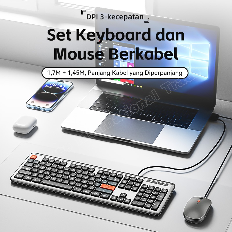 KIVEE Keyboard & Mouse berkabel business office and portable KV-K48 Grey 104 keys Garansi 1 tahun