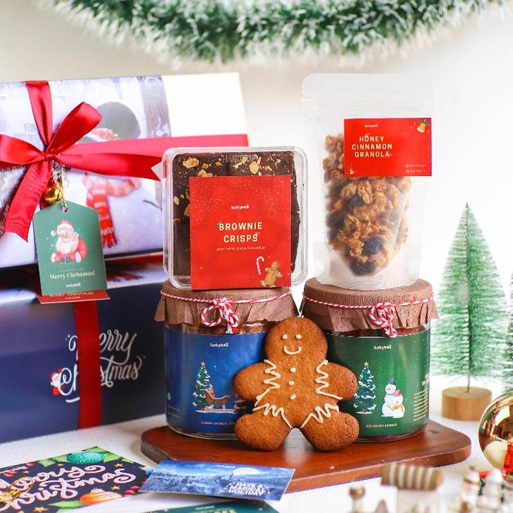 Hampers Natal Christmas Hampers Semi Hardbox Red Velvet Cookies + Oat Cookies + Brownie Crisps + Ginger Bread