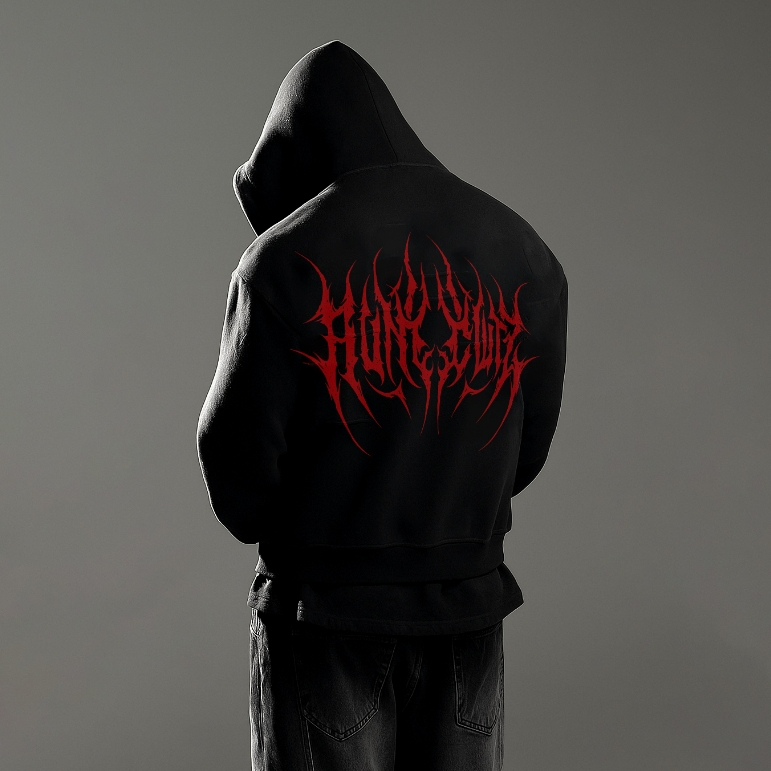 Hoodie Pria Black Metal Red blood
