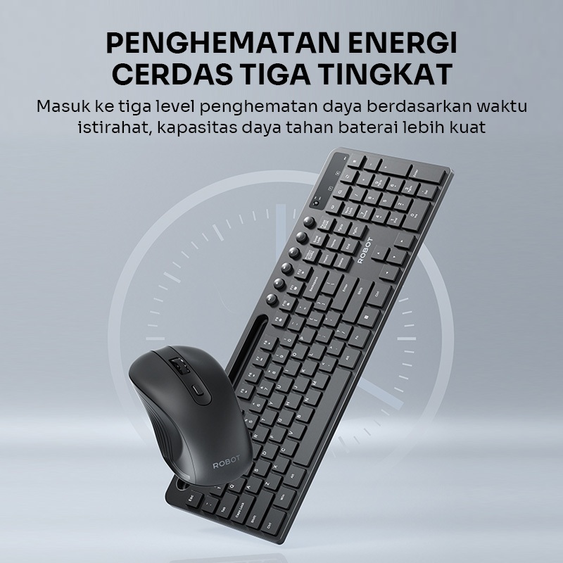 ROBOT Keyboard dan Mouse Wireless Combo Dilengkapi Holder Slot Penyangga Hp Koneksi Wireless KM3700 Multi-Device Untuk Ipad