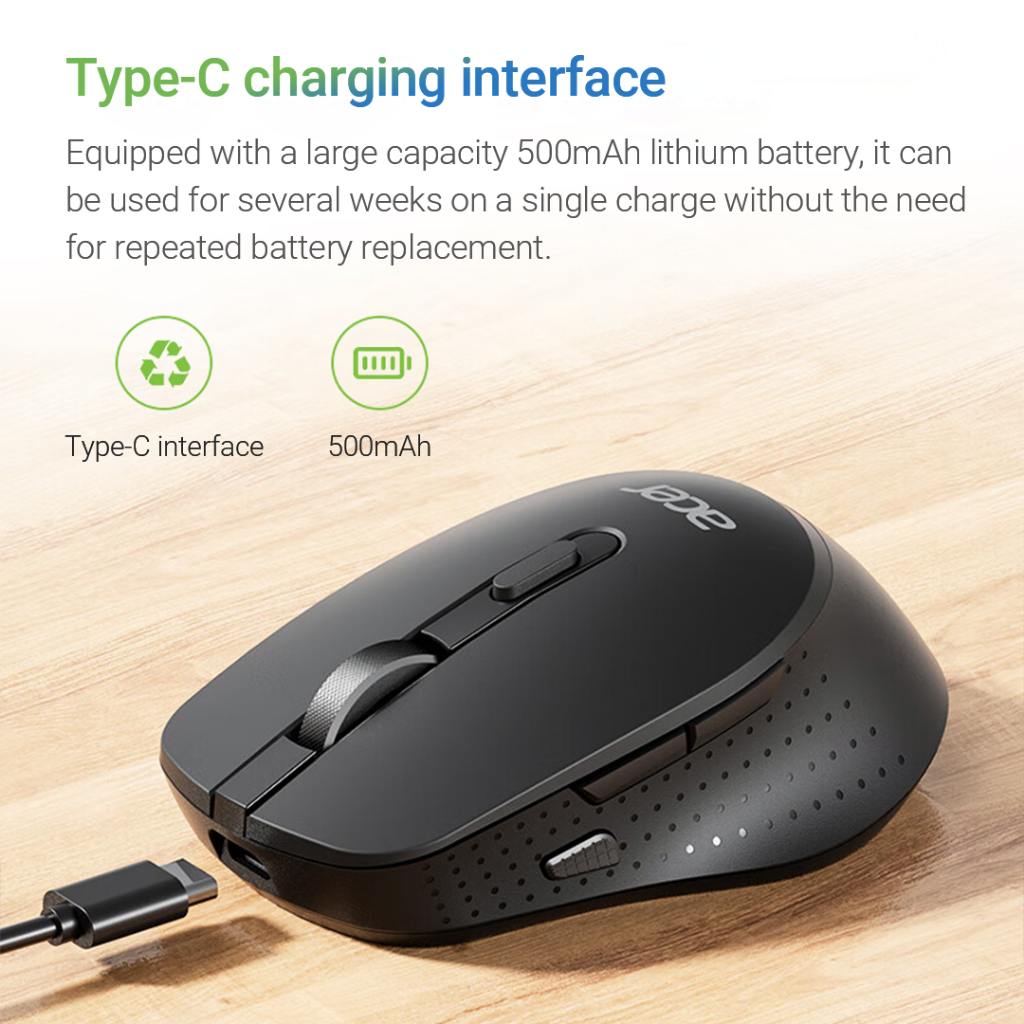 Acer Mouse Wireless Bluetooth M155 BT5.0 2.4G Dual-Mode Diisi ulang 800/1200/1600DPI Untuk Studi Kerja