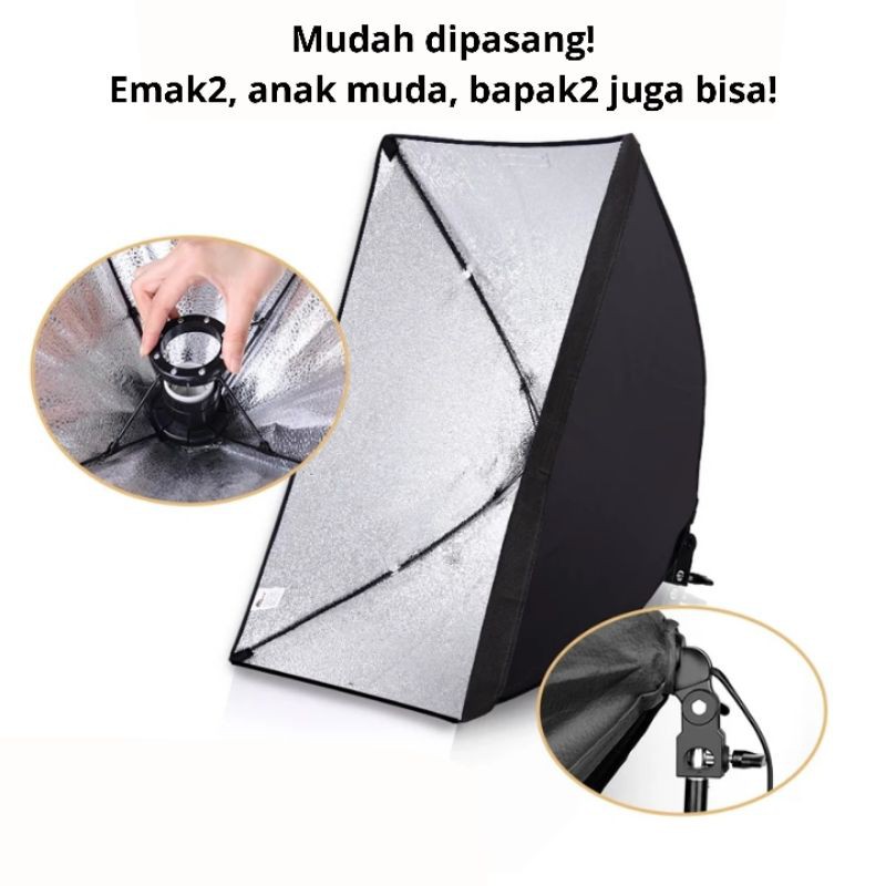 Paket Studio Foto Light Stand 2M Softbox Lampu E27