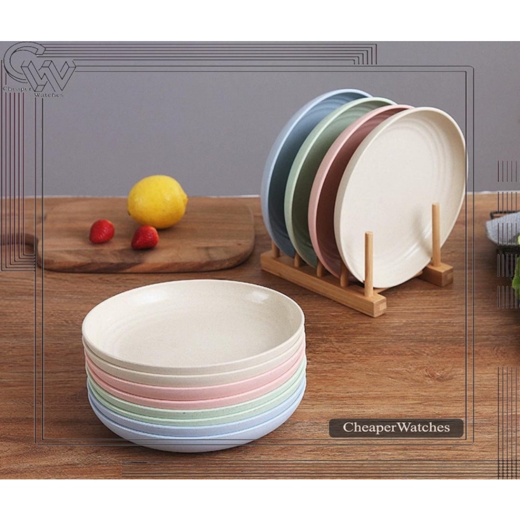 SET PIRING 1Pcs - Piring Makan Bulat Saji Model Jerami Gandum Plastik Piring Saji 8 Inc | CheaperWatches