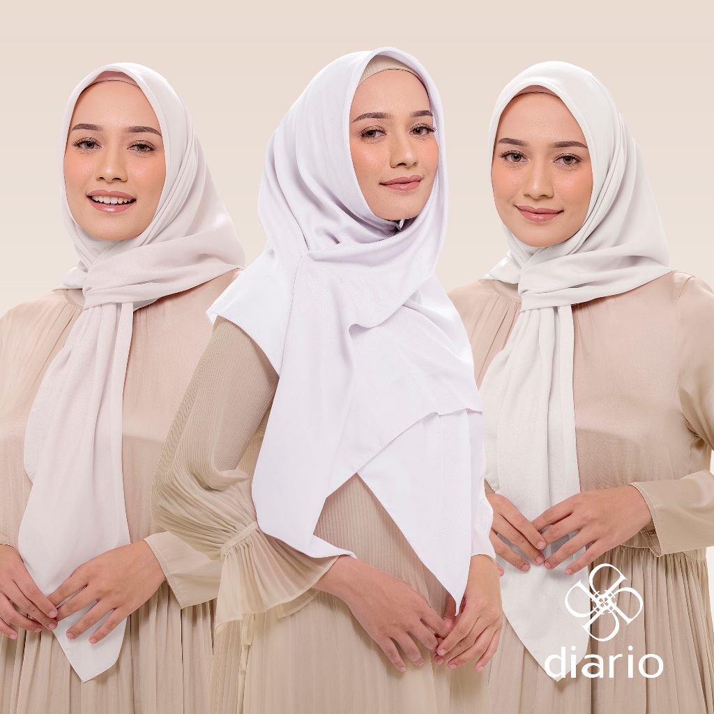 Diario - Kerudung Segi Empat Ultrafine Plain Scarf White Series