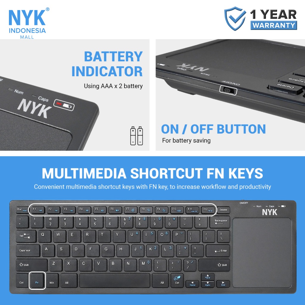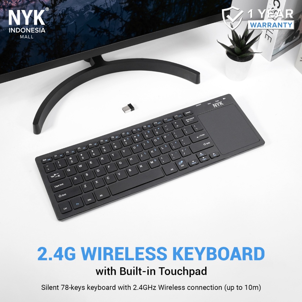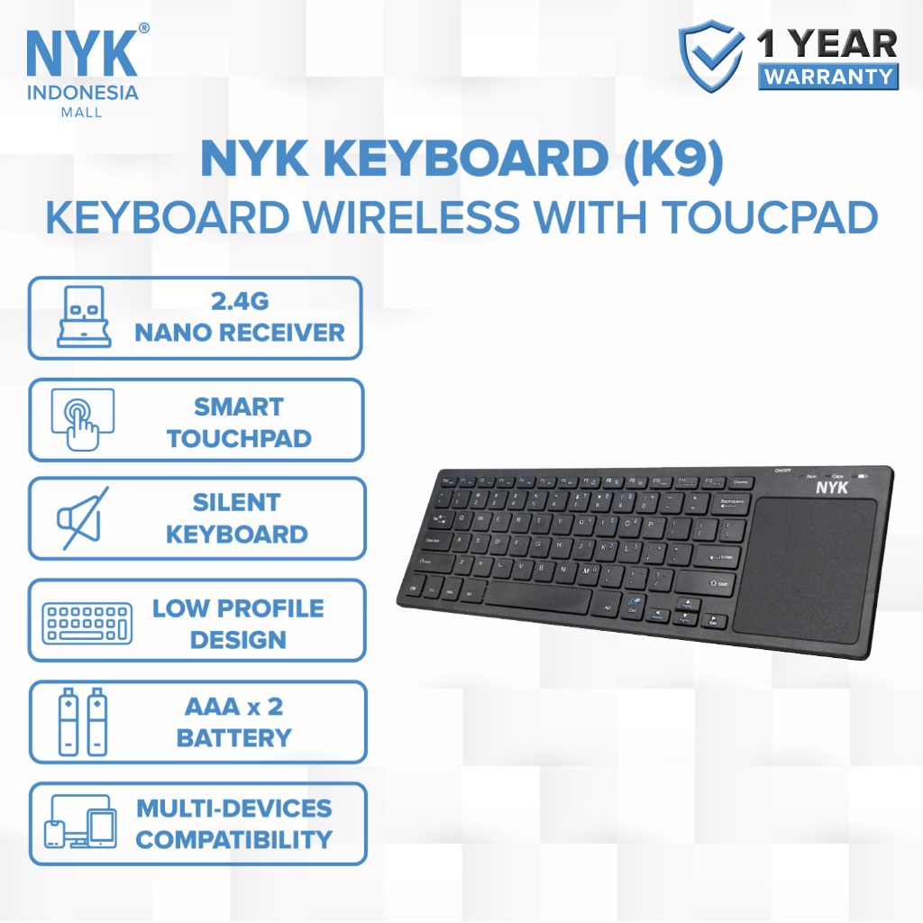 Keyboard Wireless NYK K9 + Touchpad Smart, Silent, Multi Device 2.4G