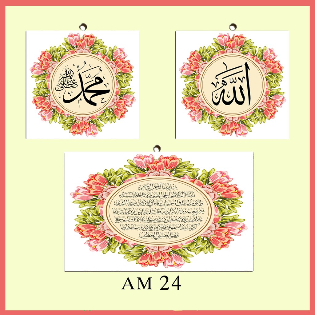 Wall Decor Kaligrafi Allah Muhammad & Ayat Kursi Hiasan Dinding Pajangan Dinding Shabbychic