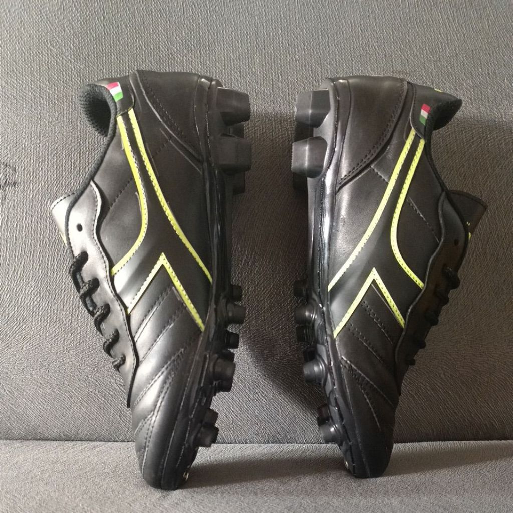 Sepatu Bola Kulit Sapi Asli Black Green Sudah Di Jahit Keliling Super Kuat