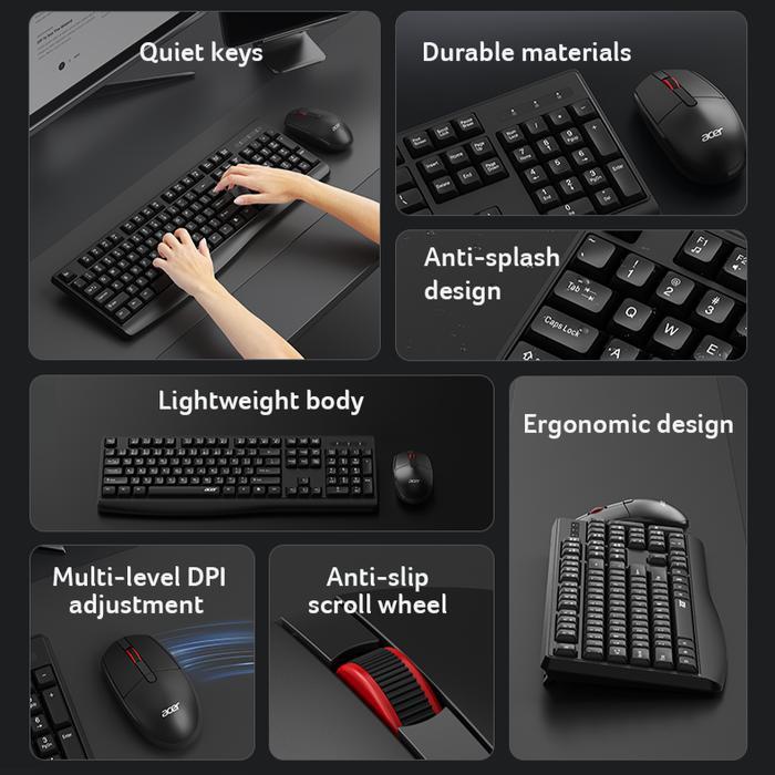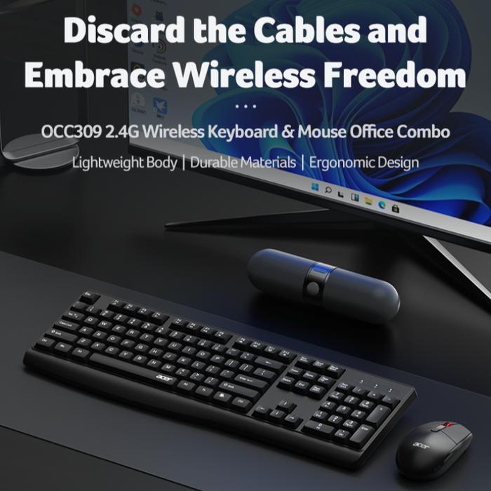 Keyboard Mouse Acer OCC309 Combo Wireless 2.4GHz, Support Windows & Mac, 1600DPI Garansi 1 Tahun