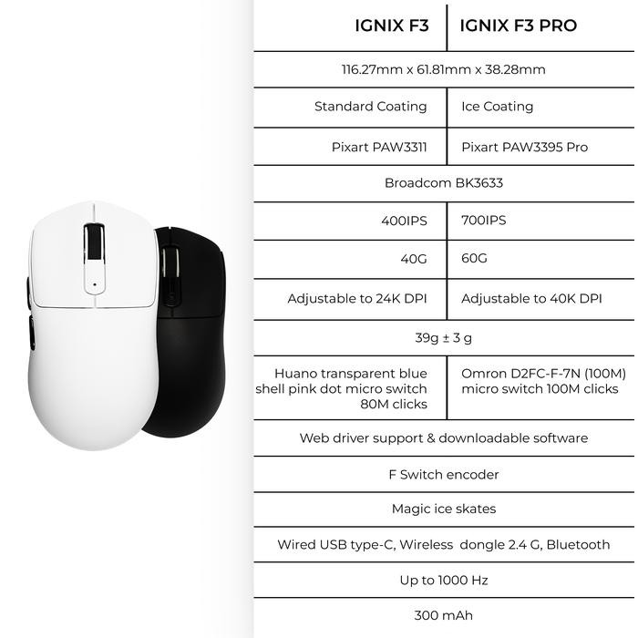 VortexSeries F3 IGNIX / VortexSeries F3 Pro IGNIX Series | Vortex F3 / Vortex F3 Pro | Ultra Light Wireless Tri Mode Gaming Mouse PixArt PAW 3311
