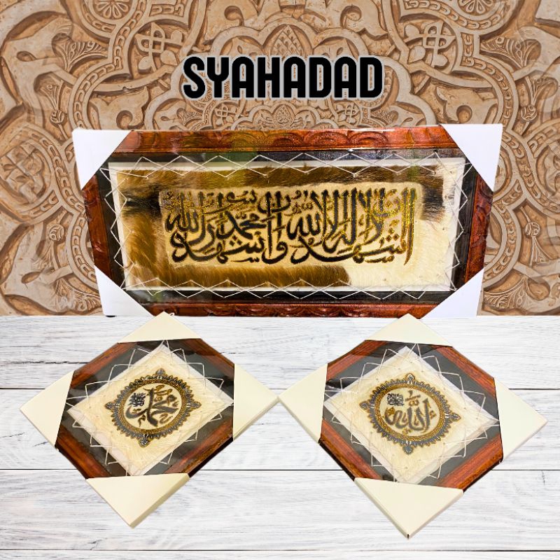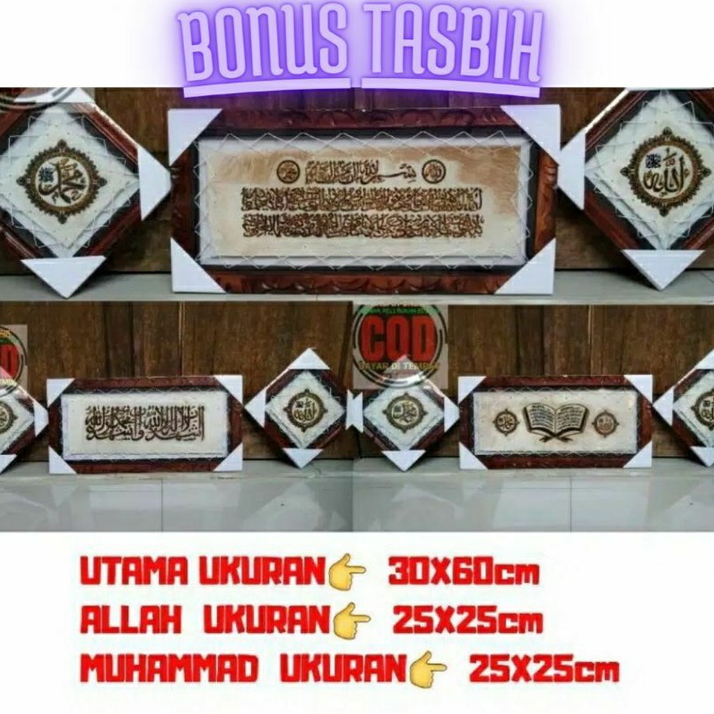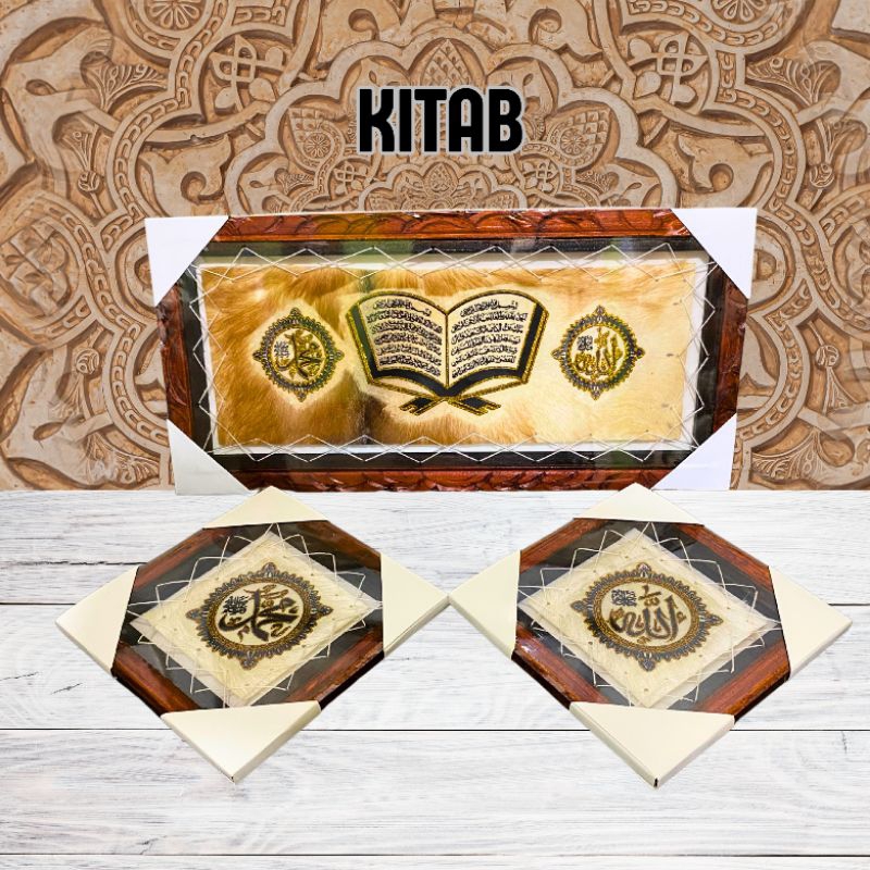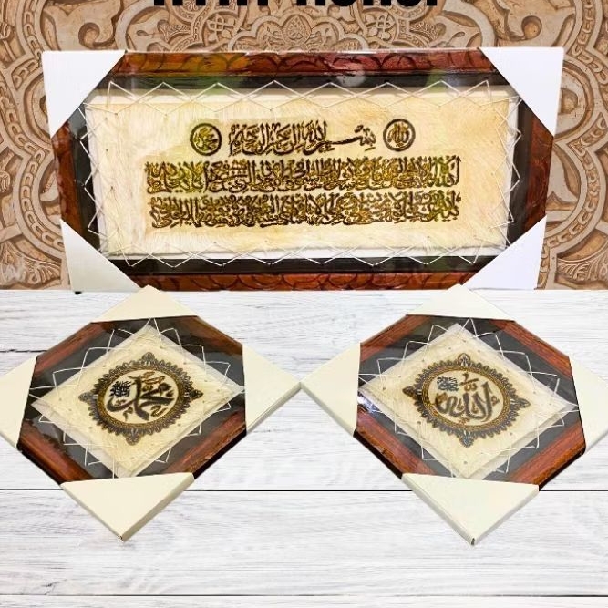 KALIGRAFI HIASAN DINDING KULIT KAMBING ISI 3 ada tasbih mininya AYAT KURSI BERAT 1 KG ADA TASBIH MINI NYA