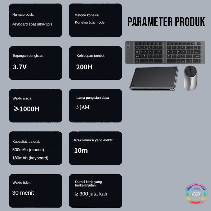 CIJI Set Keyboard Lipat Mini Wireless BT919 Multi Device 3Koneksi Bluetooth+2.4G Rechargeable